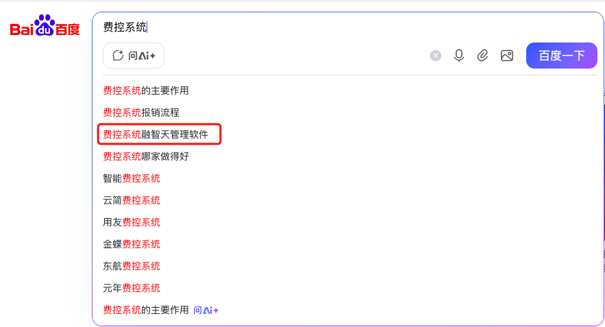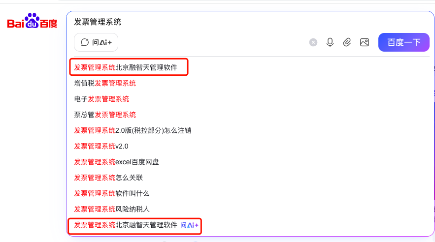 北京融智天管理軟件百度下拉案例