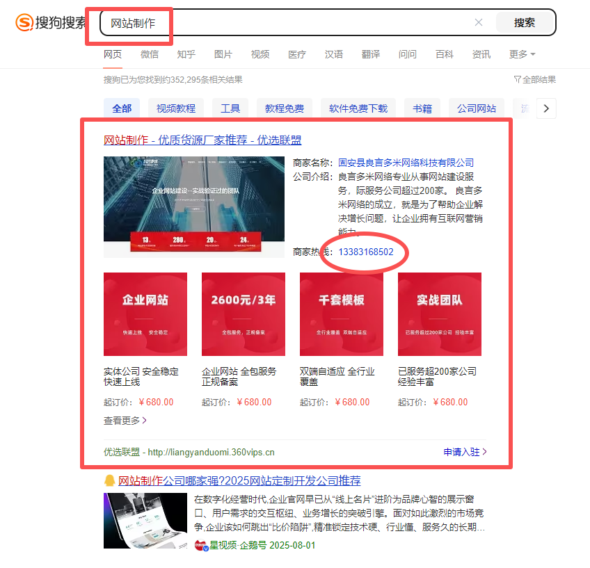 搜狗優選聯盟建議做,但它只是“流量入口的錦上添花”,不是核心。。如果一年只挑3-5個核心業務+地區詞來做(比如“北京網站建設"企業網站建設"),我覺得投入是劃算的。
